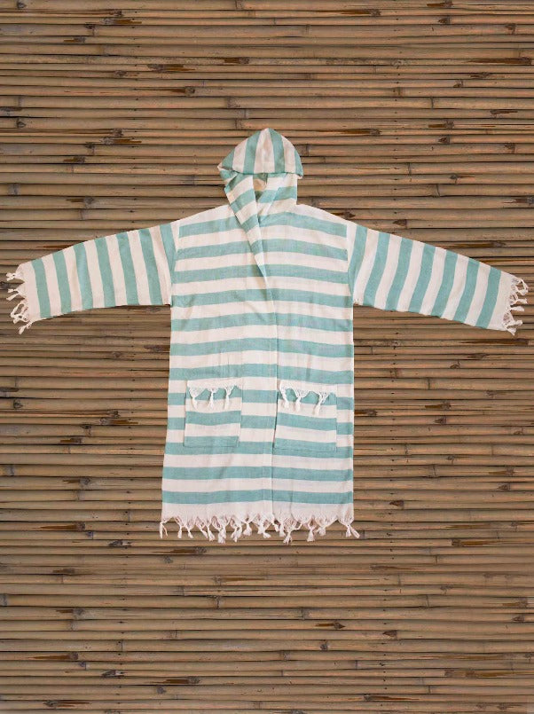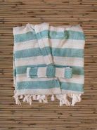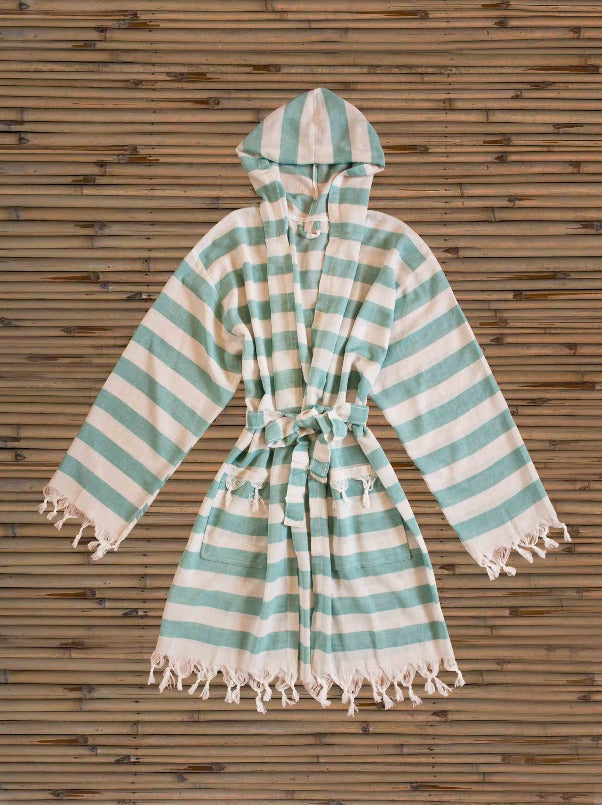 Turkish towels and robes are large, flat-woven towels that were traditionally used in Turkish baths. They are super absorbent and very quick-drying. They pack light and they are versatile as you can use them in many different ways.
